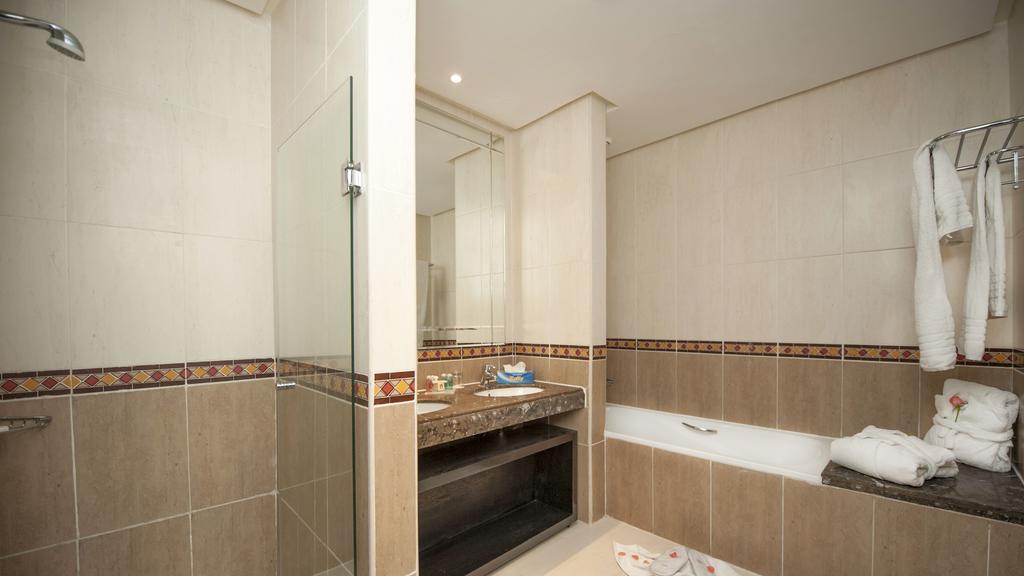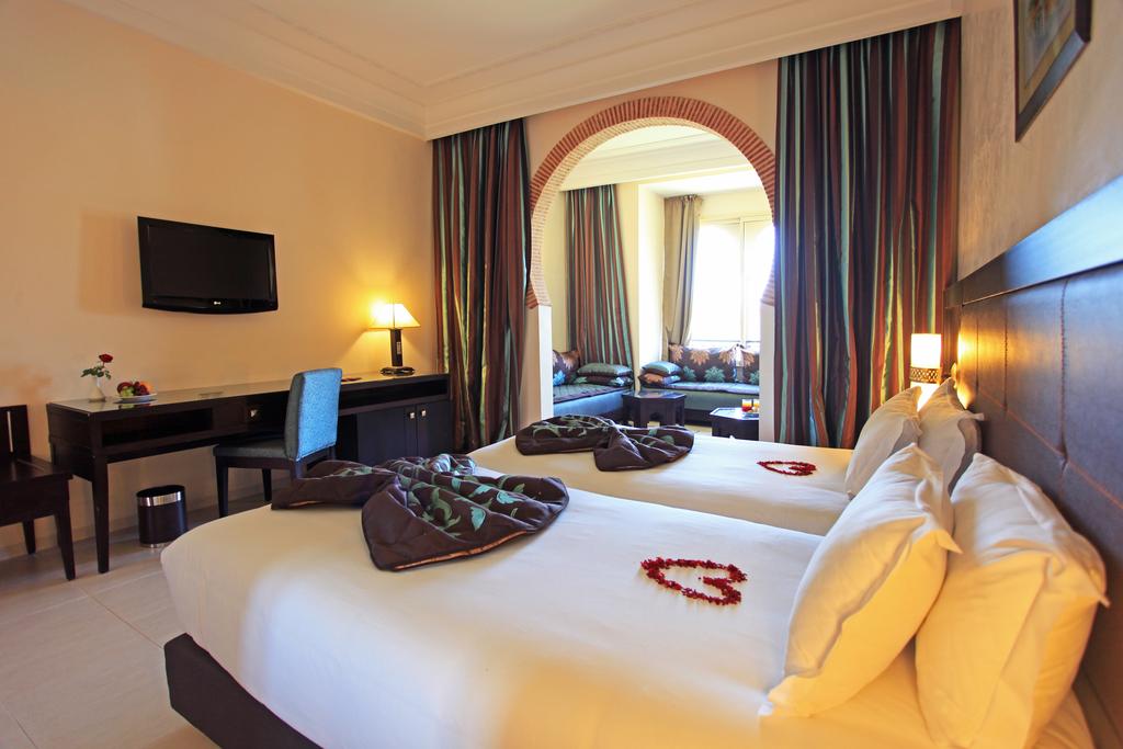 Les six riads de l’hôtel Eden Andalou Marrakech comprend 249 suites confortables et spacieuses de 44 à 48 m2 chacune. Elles s’ouvrent vers une terrasse, un balcon ou un salon en forme de U. Elles sont équipées de 2 à 5 lits individuels et comportent une grande salle de bain avec baignoire et cabine de douche pour la plupart, des vasques, un sèche-cheveux et des toilettes séparées. La chambre comporte aussi une télévision à écran plat de 32 pouces, une climatisation, une ligne téléphonique et un coffre-fort. Les résidents bénéficient de la connexion Wi-Fi gratuite partout dans l’établissement. A l’hôtel Eden Andalou, les activités de loisirs ne manquent pas. La piscine Majorelle et la piscine blanche sont de véritables lieux de détente pour les grands et les petits durant la journée. Il y a également les terrains de sport permettant de pratiquer le mini-foot, le ping-pong, la pétanque, le beach-volley et le basket-ball. Les enfants sont vraiment gâtés sur place. L’Eden Aquapark, avec ses toboggans et ses piscines, est un endroit spécialement aménagé pour eux. Il y a aussi le Kids Club où ils pourront développer leurs talents artistiques. L’équipe d’animation est également là pour mettre de l’ambiance durant la journée mais également le soir.