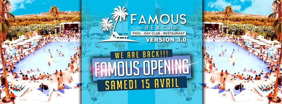 Ouvert en 2015 Route de l’Ourika , le Famous Beach Marrakech est LA piscine du Groupe 555 à Marrakech. C’est l’adresse idéale pour passer une journée relax au bord de la piscine entre amis ..avant de partir en soirée au 555. Ambiance clubbing non stop journée et soirée assurée.
