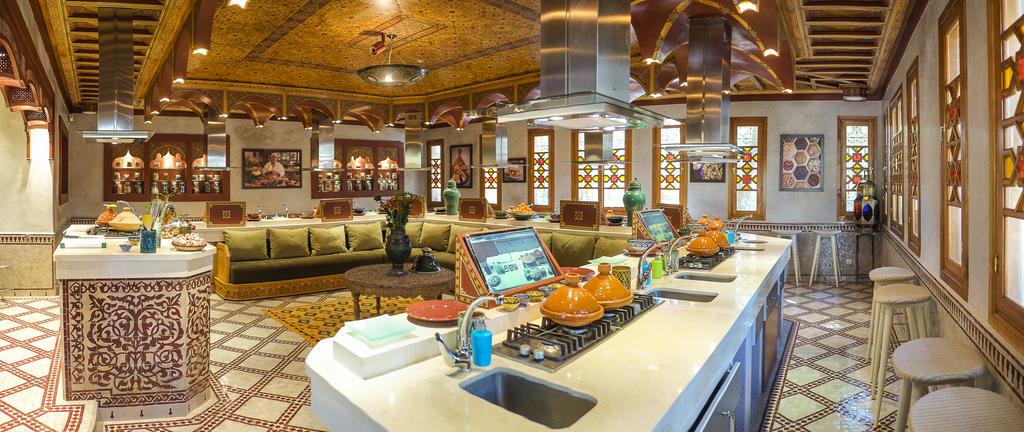 L’établissement dispose de 15 suites et de 11 chambres tournées vers le patio ou le jardin. Bon nombre d’entre elles comprennent une cheminée et une terrasse privative. Elles sont toutes climatisées pour se rafraîchir en été et se réchauffer pendant l’hiver. La salle de bain luxueuse est entièrement en granit ou en marbre. Plusieurs équipements sont à la disposition des clients durant leur séjour : TV plasma, coffre-fort, téléphone et minibar.L’atout de La Maison Arabe Marrakech est sans conteste sa Douiria, un riad privé comprenant une suite luxueuse ouverte sur deux terrasses privées, trois chambres équipées de salle de bain et un patio agrémenté d’une fontaine. Un personnel dédié s’occupera des locataires 24h/24 durant tout leur séjour. Toutes les commodités de l’hôtel se trouvent à proximité : la piscine chauffée, le centre de bien-être, les solariums, les restaurants, les bars et le Country Club accessible en 10 minutes avec la navette. Les ateliers de cuisine de l’hôtel ont obtenu un grand succès depuis des années à Marrakech. Dispensés par une cuisinière traditionnelle également appelée Dada ou un Chef marocain, le groupe comprenant 1 à 10 participants dispose d’une demi-journée pour préparer une entrée avec un plat de résistance ou un plat de résistance avec un dessert. Les ustensiles utilisés sont faciles à trouver. Quant aux ingrédients, certains d’entre eux tels que les herbes aromatiques ou les légumes sont cueillis par les apprentis dans les jardins privés de l’hôtel où l’école est implantée. Une séance de dégustation a toujours lieu après chaque cours.