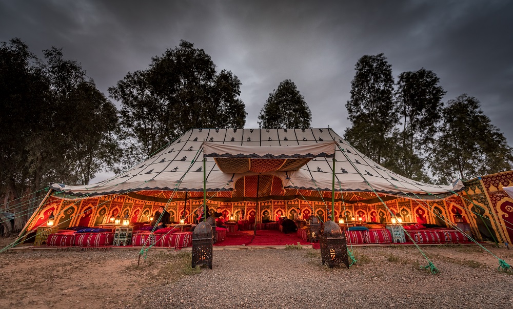 - Sous une tente caïdale avec table privée, vous dégusterez un petit-déjeuner savoureux et berbère