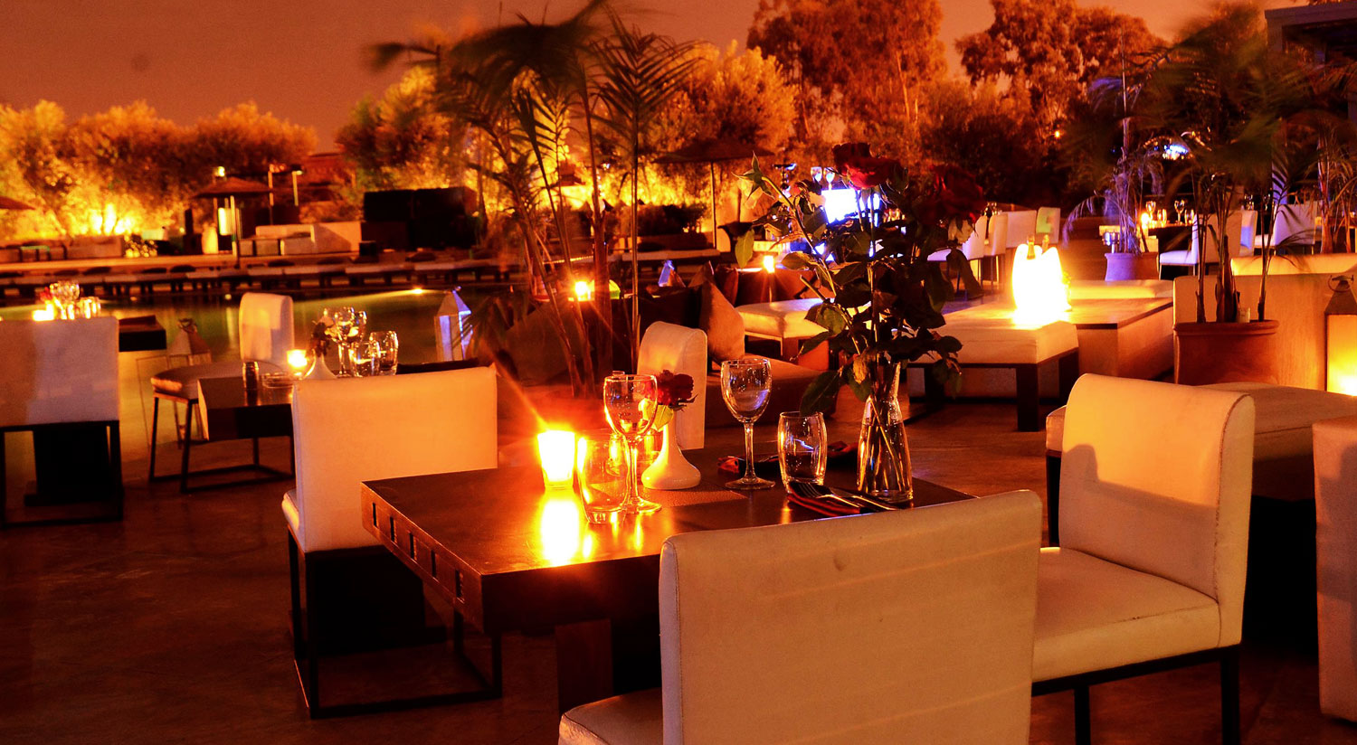 Dans un cadre privilégié, retrouvez à une même adresse un Restaurant, pool et lounge, devant une immense piscine. Des Dj internationaux rythment les après-midis pour y écouter le bon son et faire la fête. Et chaque soir , des orchestres live et des  artistes construirons  une ambiance sonore digne d’Ibiza, envoûtante, chaleureuse et sensuelle. Cette adresse fait partie des piscines festives de Marrakech comme le Nikki Beach, le Famous Beach, le Fiesta Beach , la Plage Rouge.