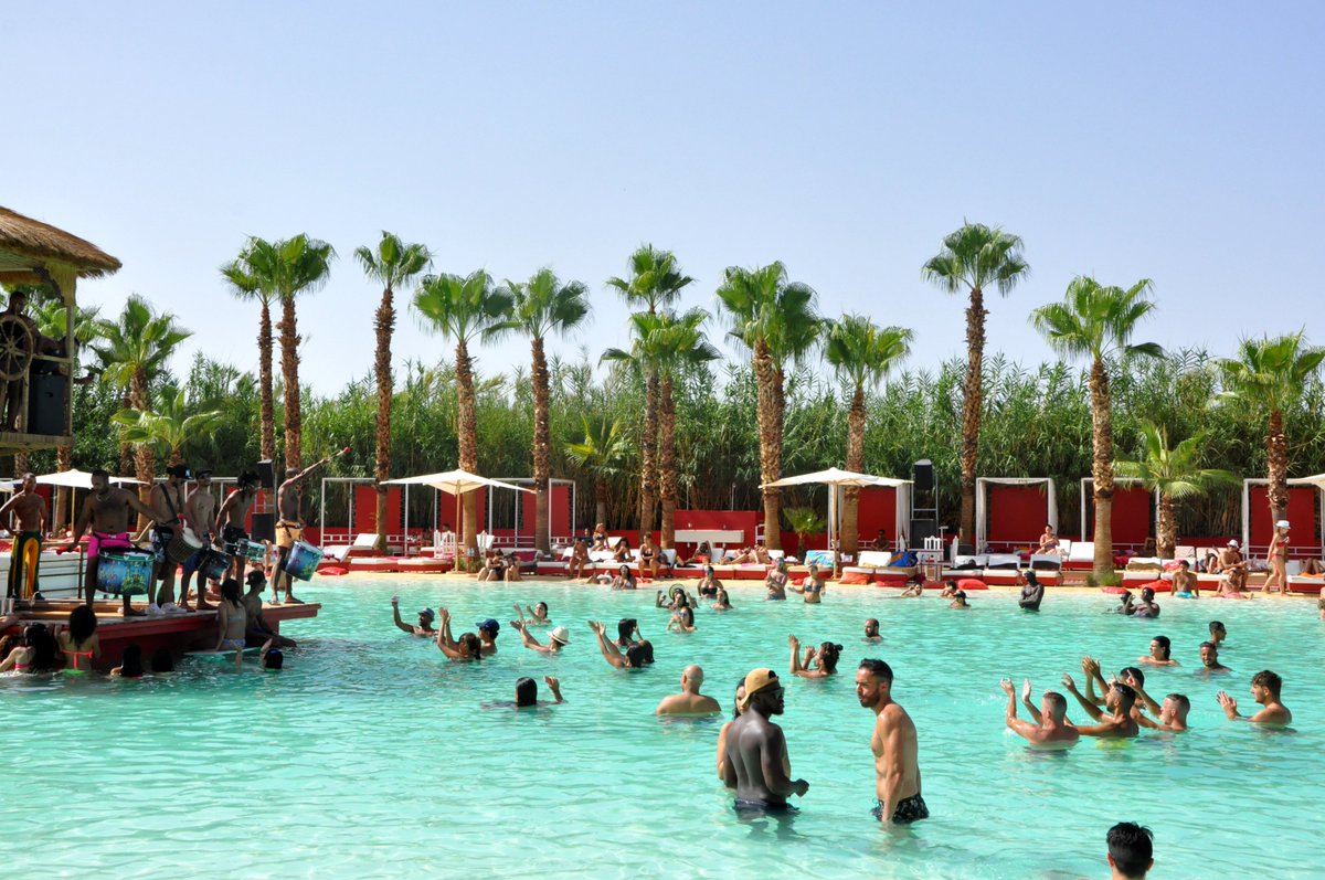 Cette adresse fait partie des piscines festives de Marrakech comme le Myah Bay, le Famous Beach Marrakech, le Nikki Beach , le Fiesta Beach. Vous y trouverez également salon d’esthétique et boutique souvenir. Soirée before avec show humoriste et spectacle a partir de 21h. Puis La Plage Rouge se transforme en dance floor privé de 3200 m² au bord de l’eau avec jeux de lumière et musique techno.