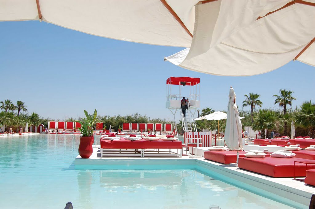 Ouverte en 2006 Route de l’Ourika , la Plage Rouge est la pionnière des piscines clubbing sur Marrakech : la plus grande piscine de Marrakech ( 80x50m) , un restaurant , et surtout une ambiance de folie avec Dj Résident, percussionnistes, danseuses pour bouger dans l’eau et autour de la piscine.