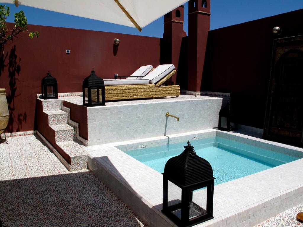 Il y a tout d’abord ses 5 chambres luxueuses avec dressing adaptées aux couples et aux familles. Elles sont toutes climatisées et comportent un sèche-cheveux, des peignoirs et des chaussons. Le coin salon permet de se reposer dans l’intimité après avoir affronté le tumulte de la ville de Marrakech. La cheminée est fort utile en hiver lors de la baisse de la température. Tout appel téléphonique local est gratuit, un plus à ne pas négliger pour ceux qui ont des connaissances dans la région. L’accès au réseau Wi-Fi est gratuit aussi bien dans les chambres que dans les salles communes comme le lobby, la terrasse faisant office de solarium, le jardin et la bibliothèque. Les résidents peuvent se prélasser sur les chaises de plage placées au bord de la piscine extérieure ou rentrer dans l’eau pour se rafraîchir. Le riad propose quelques services dont la navette pour l’aéroport, l’assistance pour l’organisation du voyage, la location de voiture, le nettoyage à sec et la garde d’enfant pour ceux qui en ont besoin.