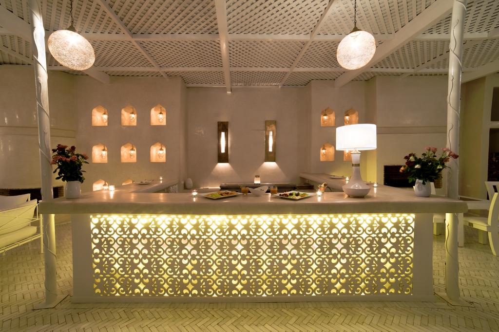 Pour se restaurer, les résidents du Riad Palais Blanc peuvent prendre place sur la terrasse de l’hôtel. C’est un endroit privilégié car en été, la pergola protège les clients de la forte chaleur tandis qu’en hiver, le solarium laisse filtrer les rayons de soleil.Le matin, un petit-déjeuner marocain copieux est servi au restaurant ou sur la véranda privée des clients. A midi et le soir, le restaurant propose les meilleurs plats traditionnels marocains d’une part et la gastronomie italienne d’autre part. Les convives seront bercées par une ambiance musicale arabo-andalouse jusqu’à la fin de leur déjeuner ou de leur diner. Le longe-bar de l’hôtel reste ouvert aux noctambules souhaitant terminer la soirée en beauté.
